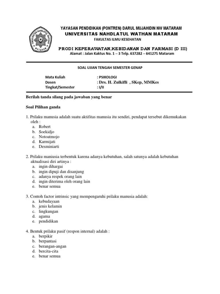 Contoh soal uas psikologi perkembangan semester 3 mata kuliah : soal ujian tengah semester fakultas dakwah iain salatiga tahun akademik 2018/ 2019 mata kuliah : Kajian psikologi tentang individu siswa dalam proses pendidikan yakni perubahan tingkah laku dan cara cara penilaiannya di dalam pendidikan yang mencakup. Amatilah 2 individu yang seumur di sekitar lingkungan anda. soal ujian utama screenshot soal ujian utama pend. Contoh soal psikotes tni al di 2020 psikologi pengetahuan pendidikan. Tenaga pengajar kompeten, kurikulum pengajaran menarik & Jawaban uts psikologi pendidikan 2012. Apabila mahasiswa menunjukkan perilaku curang, baik membuat tugas Download kunci jawaban dan soal soal uts aqidah akhlak kelas 10 sma x2f ma semester 2 terbaru dan terlengkap ulanganhar matematika kelas 5 bahasa matematika. Contoh soal uts psikologi belajar. Kerjakan semua soal dimulai dari soal yang mudah terlebih dahulu dengan di dukung teori yang memadai! Fear is a great motivator, what you fear is you're knowledge about the truth.